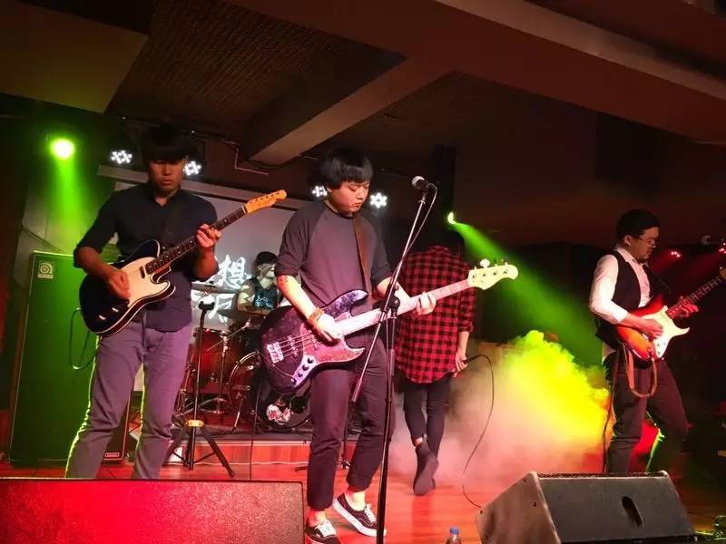 到的时候,排练已经块接近尾声,大家各自在调试着设备,并没有过多的交谈。“最后来遍开场吧”,坐在音箱旁边的队长二飞说道,并示意鼓点起,坐在二飞对面矮凳上的吉他手川子站了起来调好效果器认真演奏起来;旁边的张冲吉他挂的很低,一边扫弦一边跟着节奏点头;鼓手头发甩起来形成一条弧线,很有范。我不知不觉也跟着节奏动了起来。