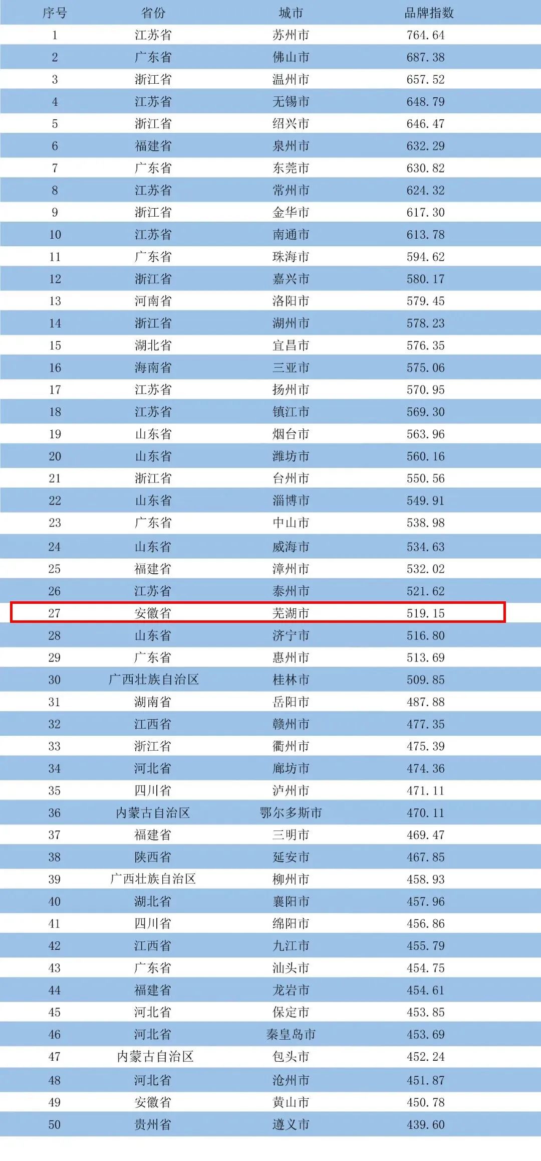 原标题:全国百强榜单公布,芜湖第27位!