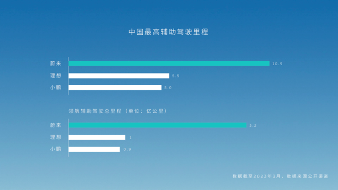 蔚来对于智能的坚持,最终迎来了收获时刻。蔚来在 6 月 12 日举办的媒体沟通会上披露,截止至 2023 年 3 月,蔚来领航辅助的累计里程达到 3.2 亿公里,是目前国内最高的车企。