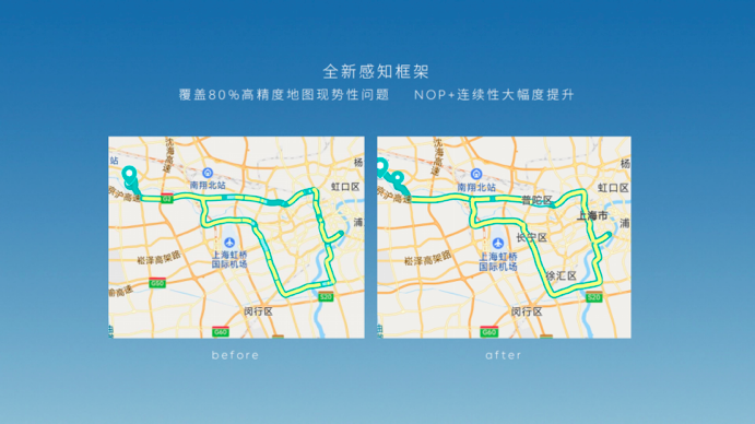 据介绍,基于蔚来的 Aquila 超感系统超高清摄像头能力,以 3D 形态融合感知俯视全景图建立的 BEV 模型也正式上线,80% 高精地图的现势性问题被覆盖,NOP+ 连续性大幅度提升。