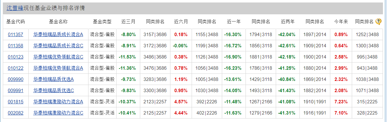 它们分别是:华泰柏瑞成长智选混合C、华泰柏瑞远见智选混合C、华泰柏瑞成长智选混合A、华泰柏瑞远见智选混合A、华泰柏瑞基本面智选C、华泰柏瑞基本面智选A。