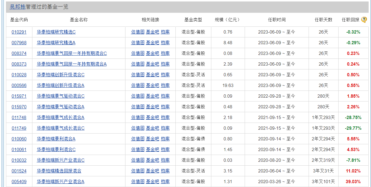 根据天天基金网数据,公司研究室不完全统计,华泰柏瑞223只基金中,资产规模低于5000万的基金55只,占比23.61%,仅吴邦栋自己,现任基金中就有5只规模不足5000万。