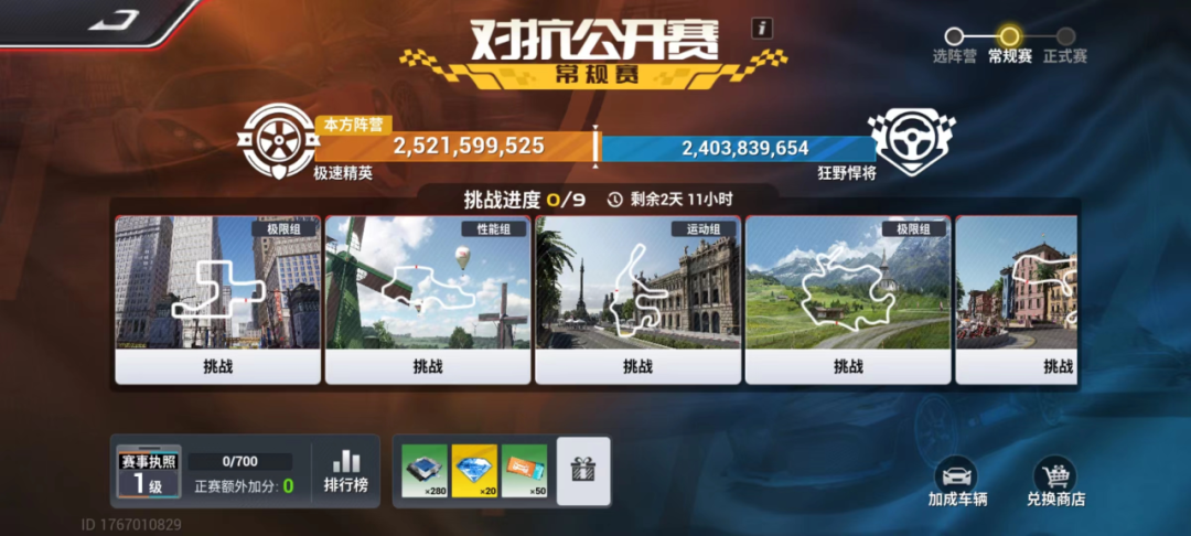 俱乐部系统每周更新一次玩法,目前开放了俱乐部耐力赛和公开对抗赛。对抗公开赛一共分为3个阶段,玩家可在两个阵营中二选一加入,根据自己拥有车型、品质、改装程度挑选6辆进行比分竞争,每场比赛中选用的车辆不能重复,这便考验玩家对车辆和赛道的熟练度,可能会出现“田忌赛马”的局面。
