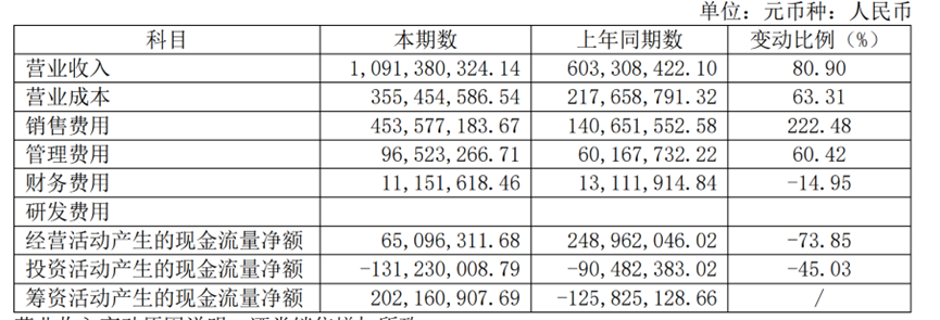 2022年4.536亿元的销售费用拆开来看,其中包括推广宣传费2.20亿元、职工薪酬1亿元和活动展示费0.51亿元,分别同比增长328%、235%和77%。