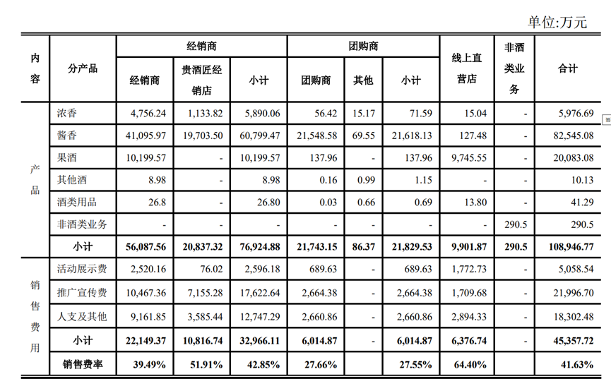 2022年,岩石股份销售费用占营收比例为41.57%,超过了同一品牌档次的白酒上市公司。对比来看,同期迎驾贡酒(603198.SH)、伊力特(600197.SH)、顺鑫农业(000860.SZ)的销售费用率都在13%以下。