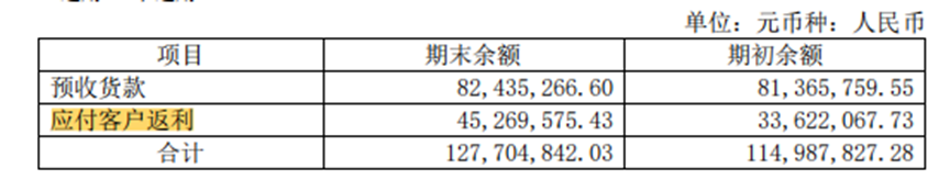 一是高额返利刺激产品销售。2021年,岩石股份应付客户返利金额为3362.21万元,占当年净利润比例的54.29%。2022年,应付客户返利金额为4526.95万元,而当年净利润仅有3724.4万元,激增程度甚至超过了当年净利润20%以上。