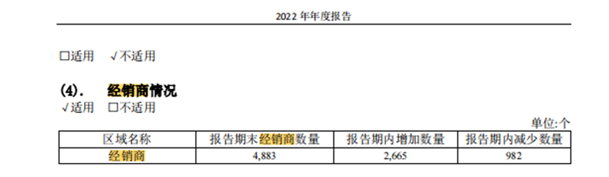 近两年,岩石股份的经销商呈现出剧烈变化。2021年初,岩石股份的经销商数量为336家,到2022年末变为4883家。两年内增长14.5倍的同时,岩石股份又在去年砍掉了982家经销商。