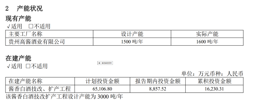 与此同时,在酱酒的库存尚有1070千升、产量同比去年减少16.2%的情况下,岩石股份还计划使用6.5亿元再扩产3000吨产能。