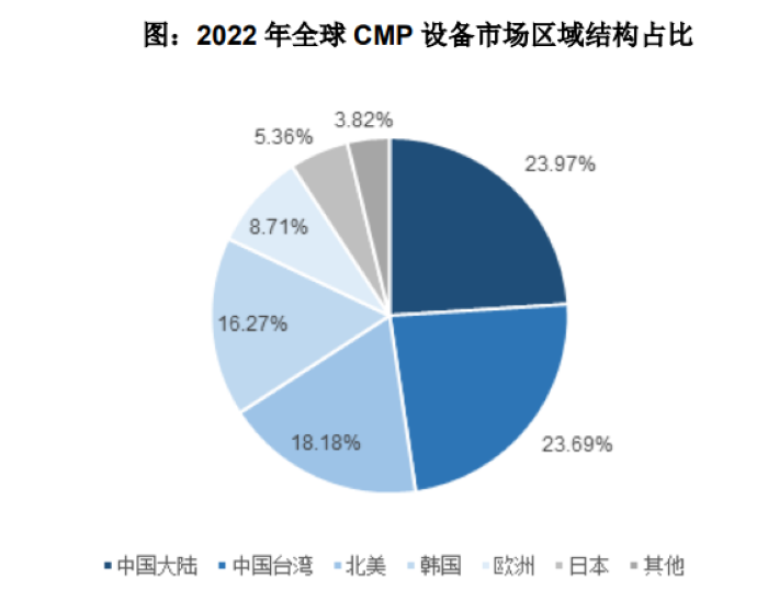 CMP设备通过化学腐蚀与机械研磨的协同配合作用,实现晶圆表面多余材料的高效去除与全局纳米级平坦化,主要用于集成电路制造领域。2020年-2022年(报告期),公司CMP设备销售分别占公司主营业务收入的98.12%、97.74%和97.98%。