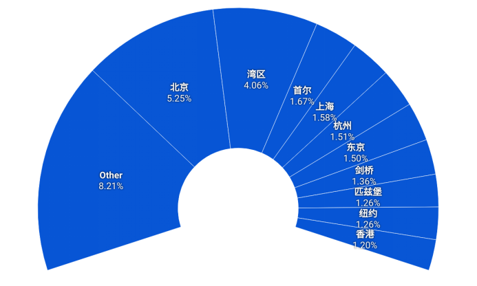 图表 3 全球人工智能学者指数排名前20城市学者占比