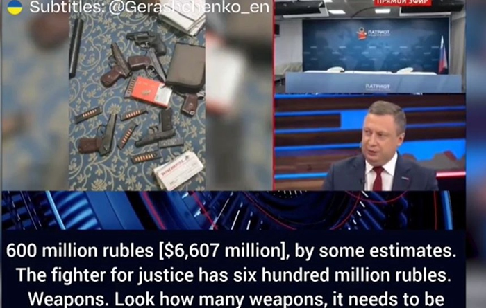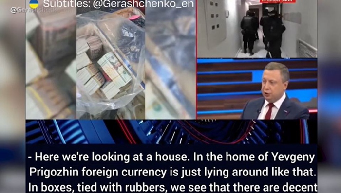 节目嘉宾、记者彼得罗夫(Eduard Petrov)谴责普里戈任为叛徒,称当局在其住所发现了6亿卢布现金。