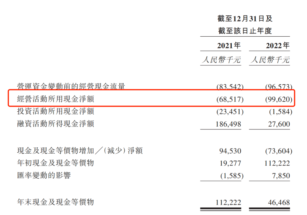 2021年和2022年,加立生科的经营活动所产生的现金净额分别为-6851.7万元和-9962万元。