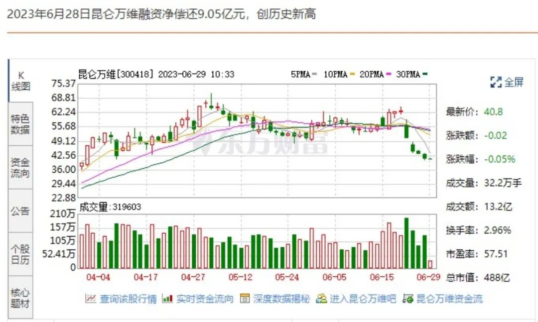 6月20日,昆仑万维释放了一颗深水炸弹,公司持股11.06%的大股东李琼计划减持公司3586.86万股股份,占公司总股本的3%。随着ChatGPT概念爆火,带火一波与AI相关的概念股,随着股票的顺势翻盘,高位减持套现操作也见怪不怪。