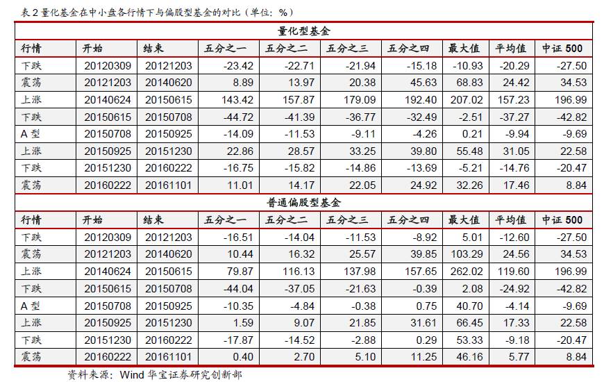 量化基金较为适合市场趋势上涨和震荡时期,而当市场出现趋势下跌的情况,量化基金则处于劣势局面。