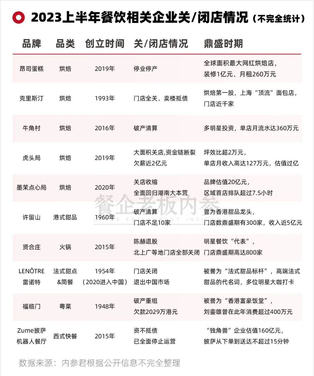 2023年并没有像餐饮市场想象得那么顺遂。本以为终于等到拨云见雾,雨过天晴,可谁知,一大批倒下的阵亡者用悲惨的现实给了幻想一记重锤。才刚七月,下半年将将拉开帷幕,上半年死去的餐饮品牌就数不胜数。
