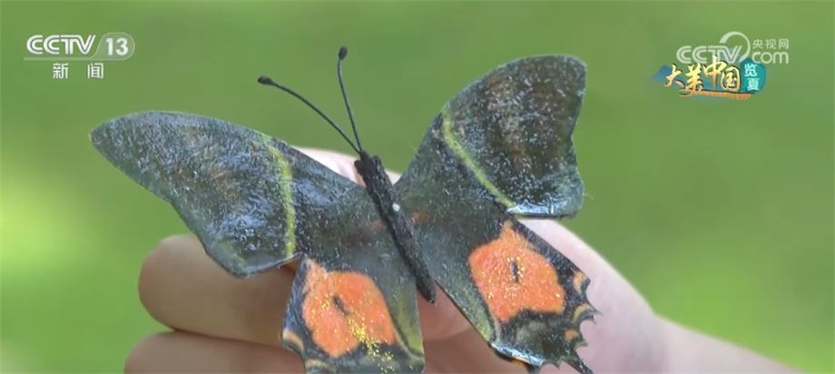 武夷山国家公园星村管理站工作人员 刘慧颖:它非常罕见,野外生存的数量比大熊猫还少,是我国唯一被列入国家一级保护动物的蝶类,也是中国特有蝴蝶。除了金斑喙凤蝶,国家公园还记录过7种昆虫为国家重点保护野生动物,比如金裳凤蝶、拉步甲等。