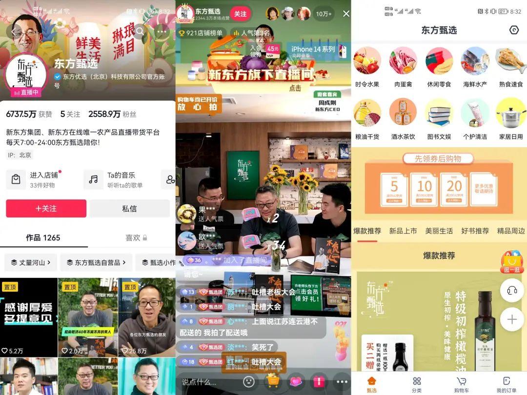 或许也是因为经历过教培行业的重大转折,新东方在进入直播电商行业并成功崛起之后,便迅速展现出了成熟商业公司的布局能力,无论是推出独立APP,还是开启多平台直播,以及自建品牌超市和合作物流,东方甄选都走到了同行前面。