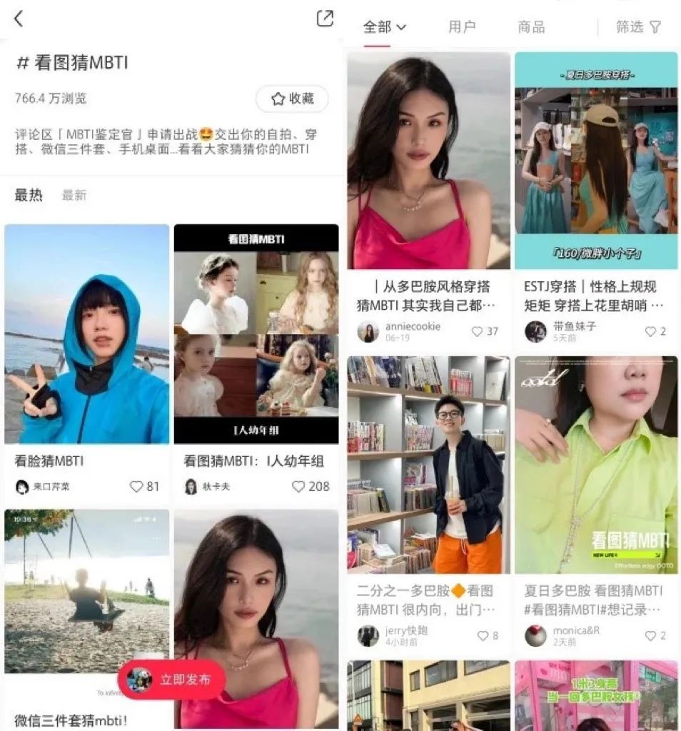 “看图猜MBTI”是小红书用户开启的一场挑战活动,目前已经有超过七百万的浏览量,在其中,“多巴胺穿搭”是不可缺少的发文元素。