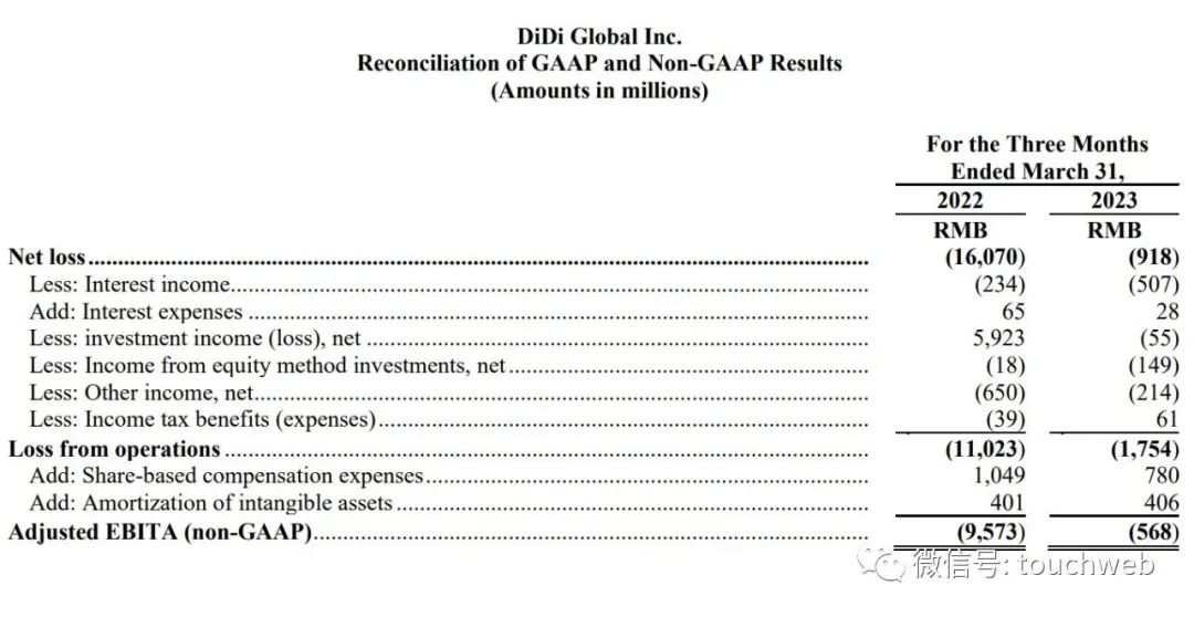 滴滴2023年第一季度Adjusted EBITA为-5.68亿元,上年同期的Adjusted EBITA为-95.73亿元。