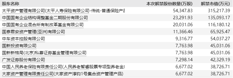 解禁数量超过1亿股的公司12家,中国东航、中国电建、南钢股份三家公司解禁数量超过10亿股。