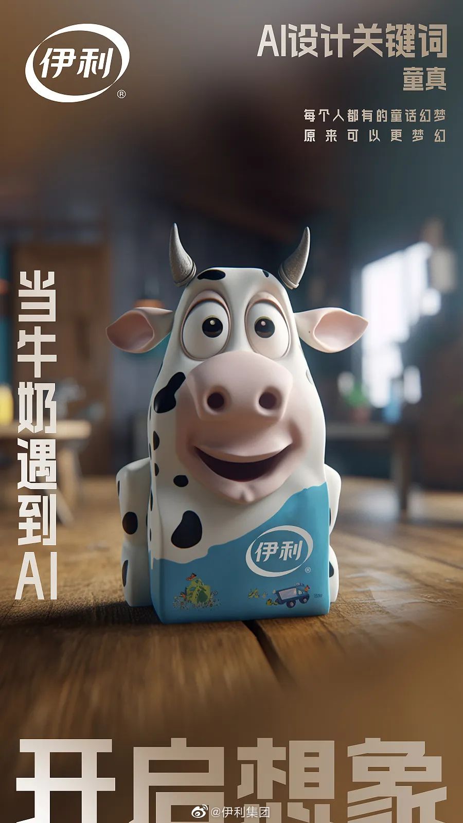 AI生产力已经卷到牛奶届了,准确的说是卷到了牛奶包装届。前不久伊利推出了6款AI生成的牛奶包装,每一种都各有特色。比如“东方美学”应用剪纸元素勾勒出大好中式山水;“自然生机”以白花配金藤,华丽的浮雕设计一如自然常带给我们的震撼;“童真”脑洞大开,牛奶瓶直接变成一头可爱的奶牛,每个人都有童话幻梦......