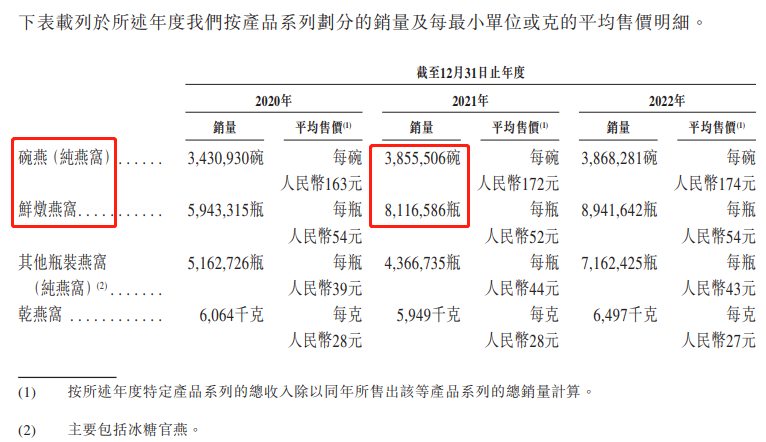 燕之屋A股招股书及提交港交所的聆讯资料所披露的单品销量有所差异。