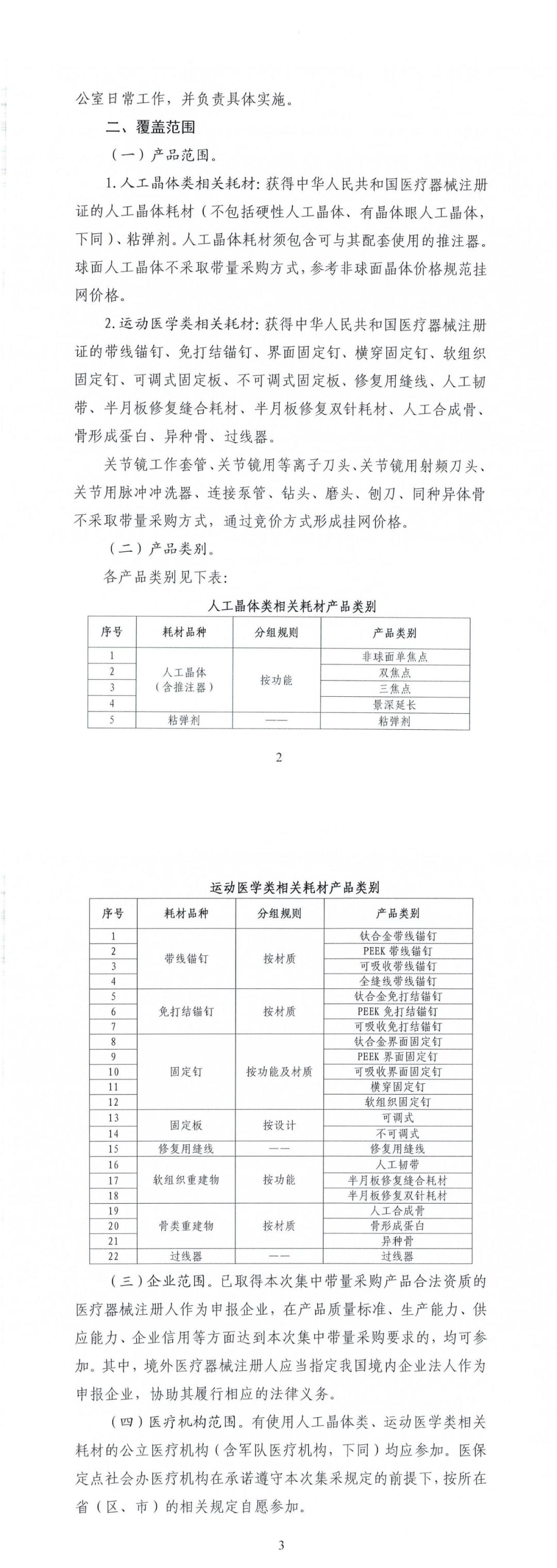 医疗机构范围:有使用人工晶体类、运动医学类相关耗材的公立医疗机构(含军队医疗机构,下同)均应参加。社会办医疗机构自愿参加。