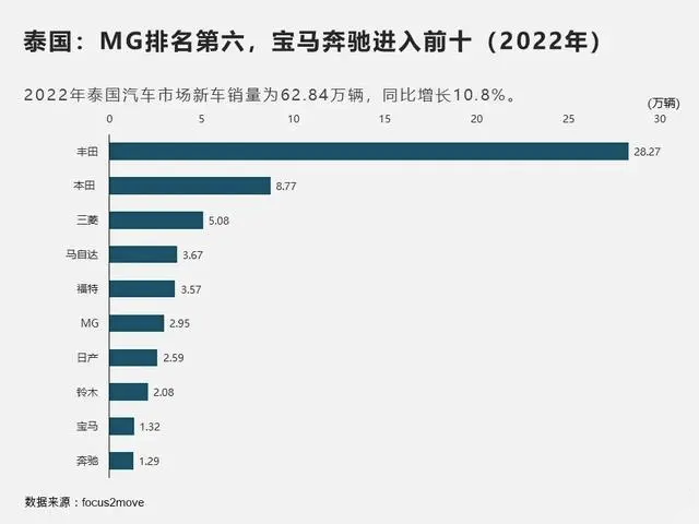 根据Focus2Move的数据,2022年泰国销售约62.84万辆新车。