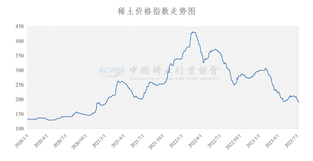 据中国稀土行业协会,7月10日,稀土价格指数报190.5,较上周五下降2.3点。