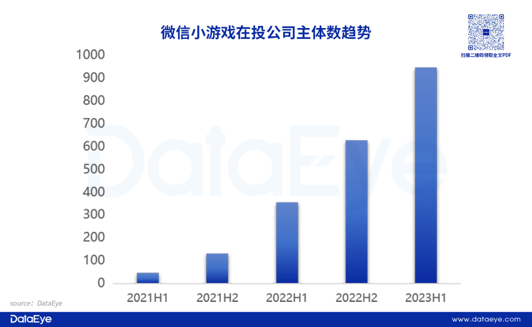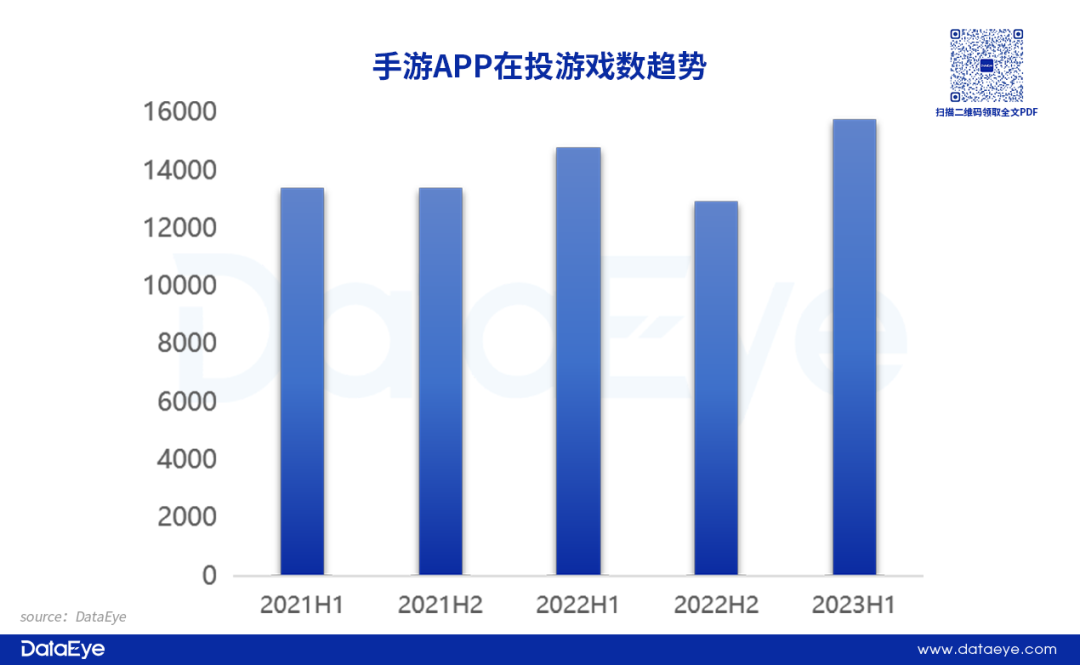 2、投放游戏数:2023上半年在投手游APP超过1.5万款,微信小游戏也接近1万款产品在投;