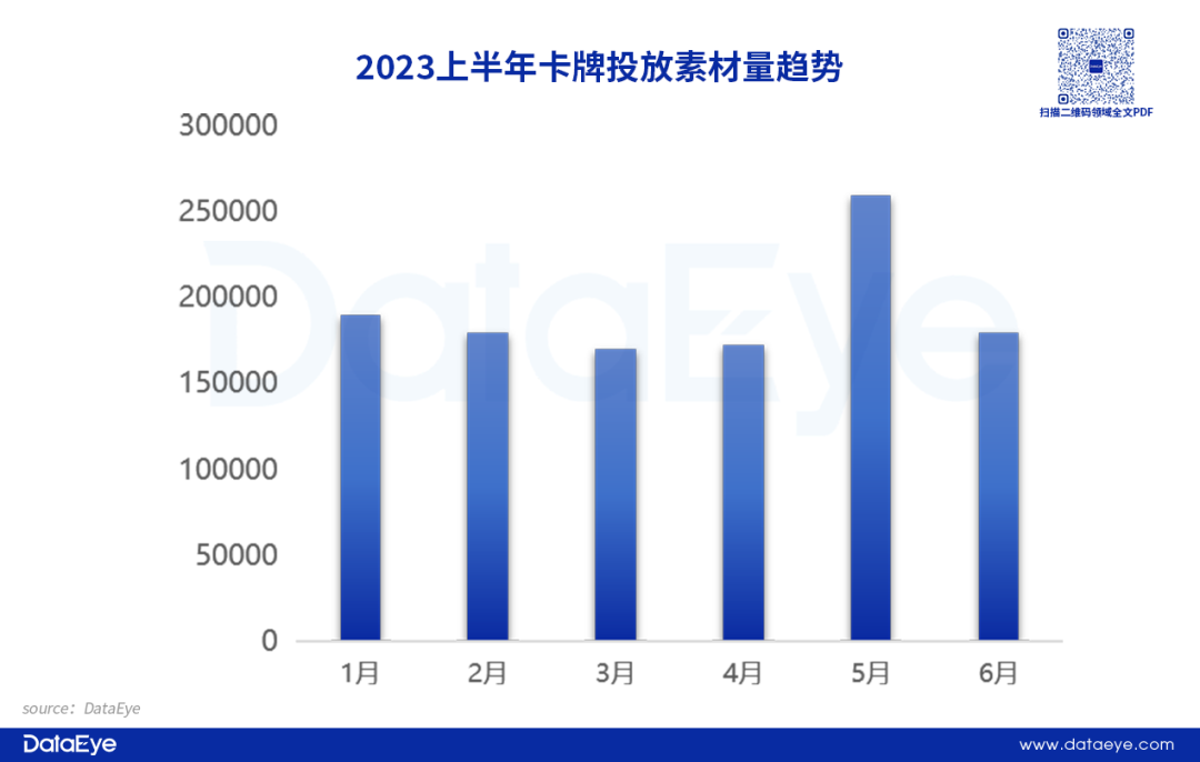 这主要因为:年初降本增效以及新游上线较少,导致素材不多;到了端午、暑期,经济逐渐回暖,以及新游密集上线,大盘素材投放量增加。