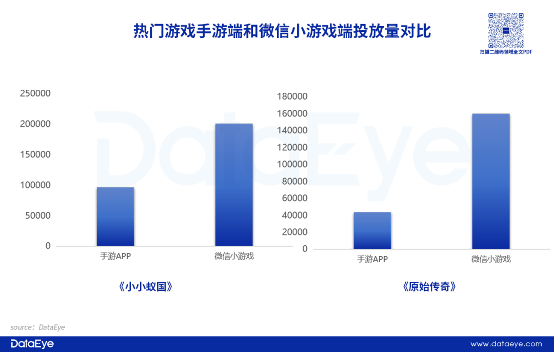 1、投放量:投放素材总量飙升,其中手游APP环比增加超过80%,微信小游戏投放量增长五倍;