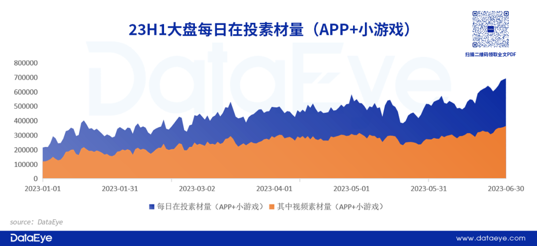 (二)手游APP:2023上半年手游APP去重素材量超过1300万,近乎翻倍