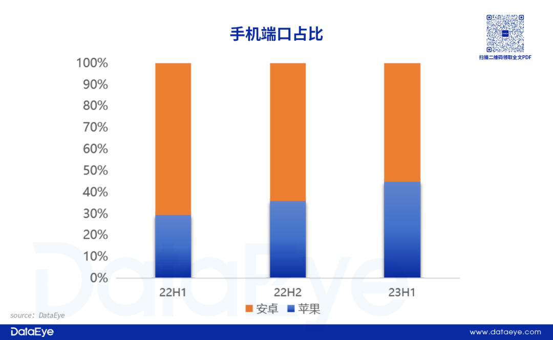 安卓端付费情况一般认为不如苹果端,在降本增效趋势下,买量行业更加趋向于用有限的预算获取更优质用户,而不是更广泛地获取“相对不优质”的用户;此外,苹果端IDFA政策导致归因更难,降低了素材获量效率,导致需要投入更多素材转化用户。