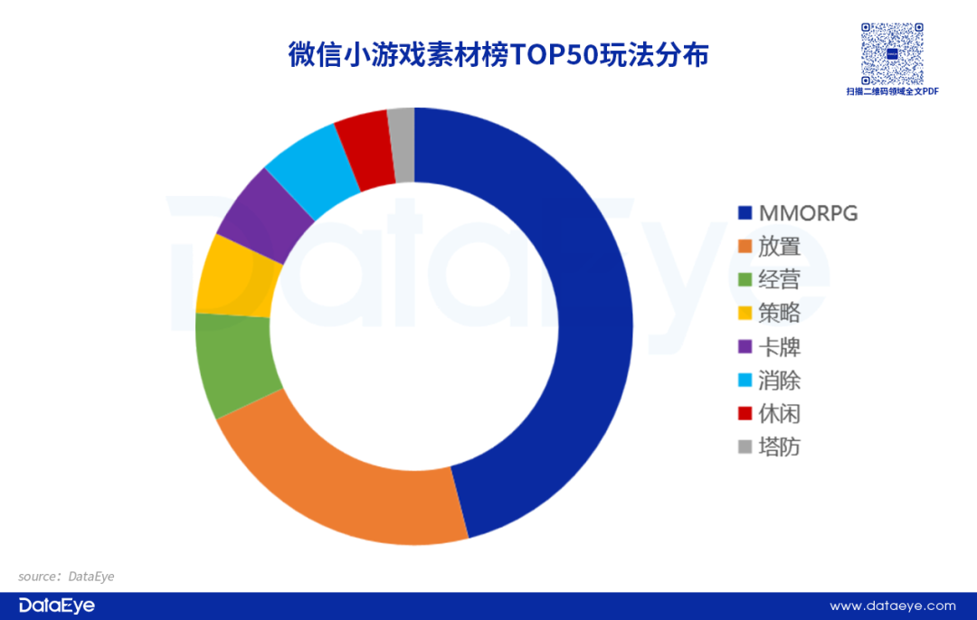 1、小游戏走向中度化、MMO、放置素材投放更多