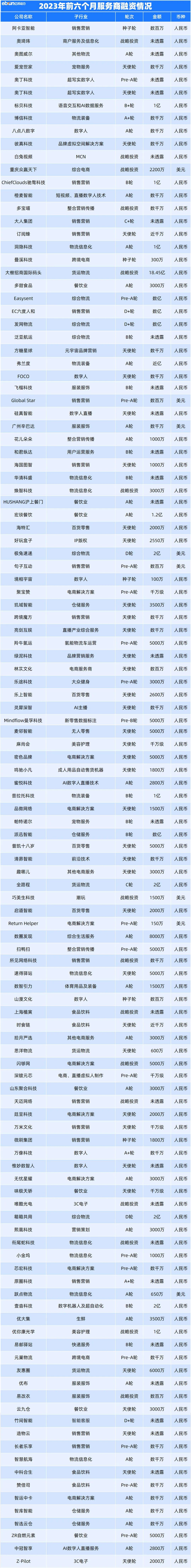 电商平台融资中与AI相关的融资事件共计12笔。以王慧文、王小川、李开复等为代表的明星创业者入局AI、大模型赛道,也助推了AI、大模型技术在不同行业的落地应用。在消费零售行业,AI、大模型技术的落地多集中在AI直播数字人以及智能客服相关领域。