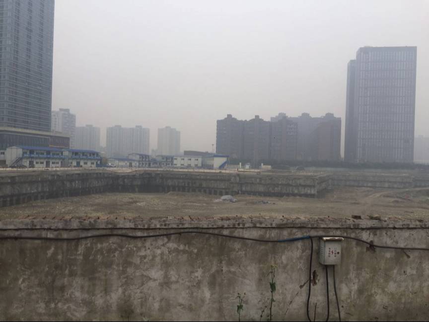 观察员走访该地块发现,周边围挡陈旧,施工板房林立,富森置业建造的地基部分已初见轮廓。地块内部平整,前期地基和地下室建设痕迹明显。