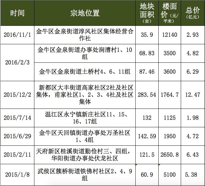 回看保利(成都)整个发展路径,体现出推盘节奏快、拿地多的偏向。整个11月,保利一边拍下金牛区两河森林区域的35.9亩商住土地,一边收购富森置业及其地块。据统计,2015年至今保利(成都)公司通过拍卖拿到8宗土地,总计932.72亩。