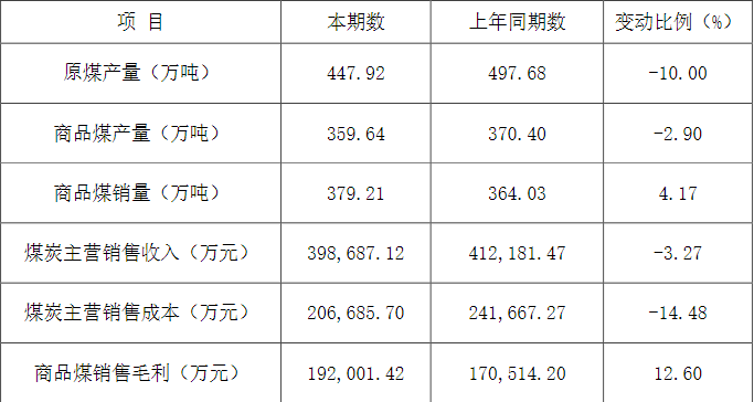 恒源煤电:上半年煤炭主营销售收入39.87亿元,同比下滑3.27%