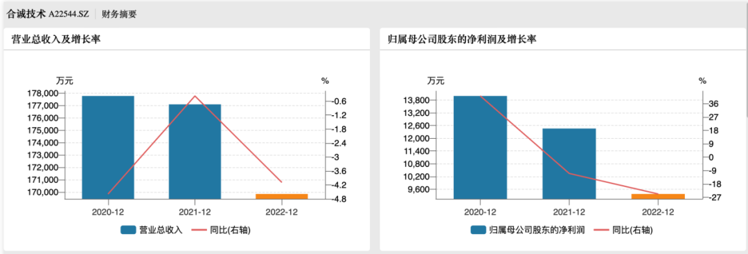 近年来,合诚技术的业绩不断下滑,此外,公司的研发费用率不敌同行,产品议价能力不足,盈利能力也令人担忧。