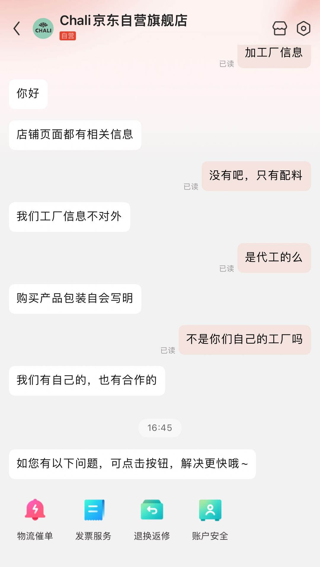 (图 / 与“Chali京东自营旗舰店”客服对话)