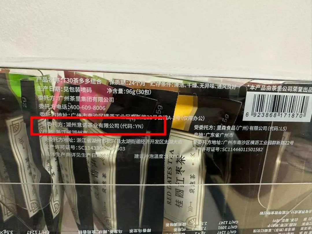 据「摩登消费」进一步了解,CHALI T30组合茶产品的生产委托方为“广州茶里集团有限公司(即CHALI主体运营公司)”,受委托方即生产商为“湖州意诺茶业有限公司(下称‘湖州意诺’)”。