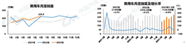 聚焦乘用车市场,6月份产销分别完成221.9万辆和226.8万辆,环比分别增长10.4%和10.6%。其中传统燃油乘用车国内销量126.4万辆,环比增长10.6%,同比下降14.7%。1-6月,乘用车产销分别完成1128.1万辆和1126.8万辆,同比分别增长8.1%和8.8%。