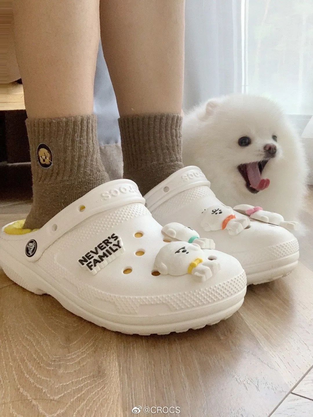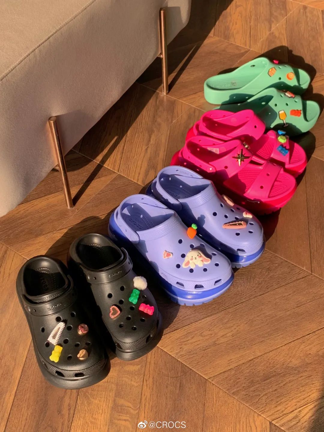 其实洞洞鞋日常的款式并不多变,经常是在鞋底厚度和颜色搭配上做文章,但是知道Crocs的人一定知道什么是智必星,智必星就是装饰扣,可以固定在洞洞鞋的每一洞洞上,让千篇一律的洞洞鞋变身成专属自己的艺术品,不用再担心和别人撞鞋,每一双都独一无二,体现心情和个性。