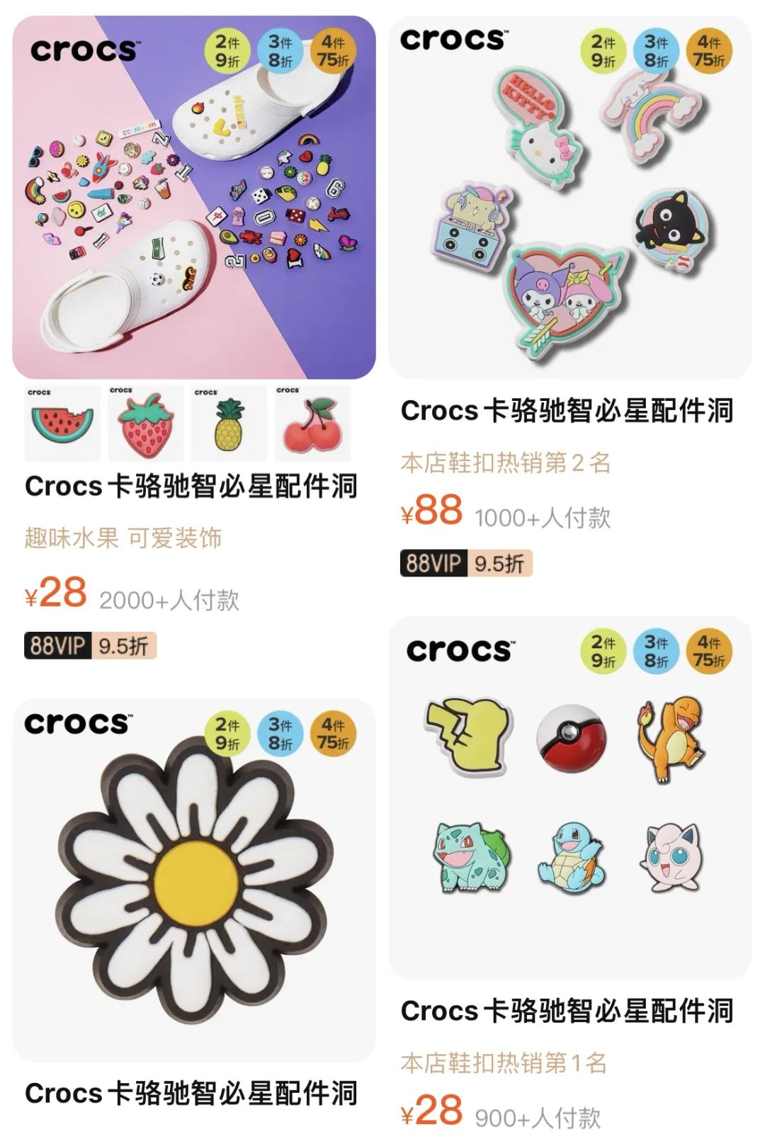 目前,Crocs的智必星已经非常丰富,能很好的满足消费者的需求。比如,IP授权系列里超级马里奥、迪士尼、宝可梦漫威、史努比等一应俱全;创意国潮系列专为中国消费者定制;质感潮流系列内是各种材质和炫酷造型;此外,可口美食、运动户外、美好假日、动物世界、趣味卡通等多个系列,几乎囊括了一切你想得到的装饰图案。