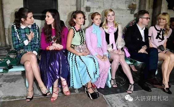 就连去看花哨的Gucci秀(图右)也要一定限度的坚持自己的原则,拒绝花花叠花花,也算一股清流。