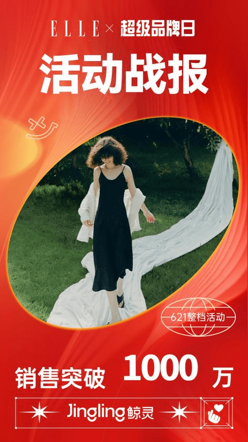 6月21日,国际时尚女装品牌ELLE上线鲸灵集团超级品牌日,首日卖出超600万,整场销售额破1000万,引领私域夏日法式时尚潮流新风范!