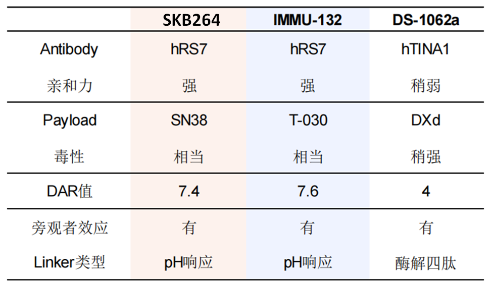 其自研平台开发的SKB264(TROP2靶点ADC)结构设计与吉利德、第一三共同类产品对比有一定优势: