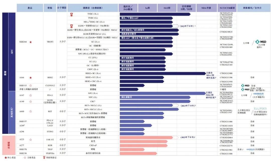 而被资本看好的潜力资产,就是作为其核心产品的两款ADC药物(SKB264、A166),以及一款即将上市的PD-L1(A167)。