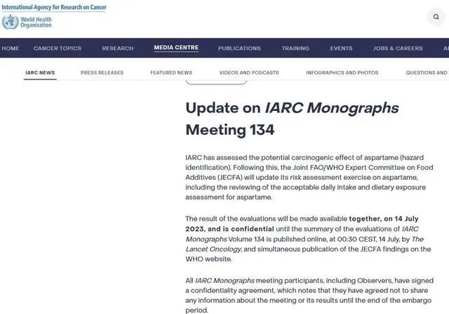 6月29日,根据路透社报道,知情人士透露,世界上最常见的人工甜味剂之一——阿斯巴甜将于今年7月首次被世界卫生组织(WHO)的癌症研究机构——国际癌症研究机构(IARC)列为“可能对人类致癌的物质”。